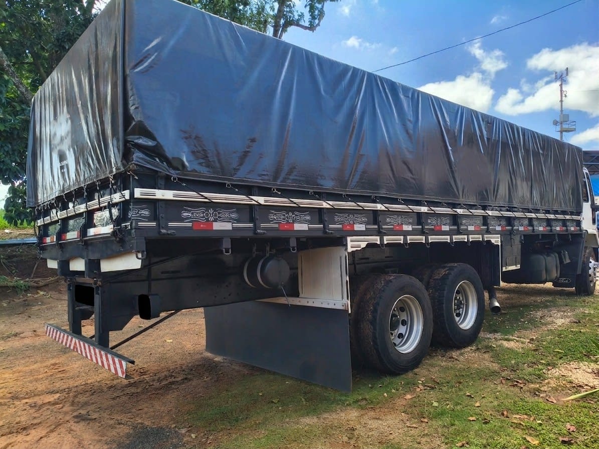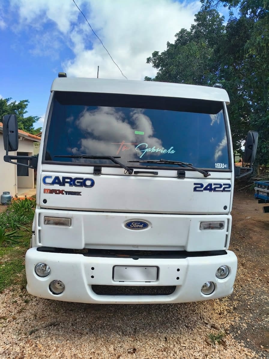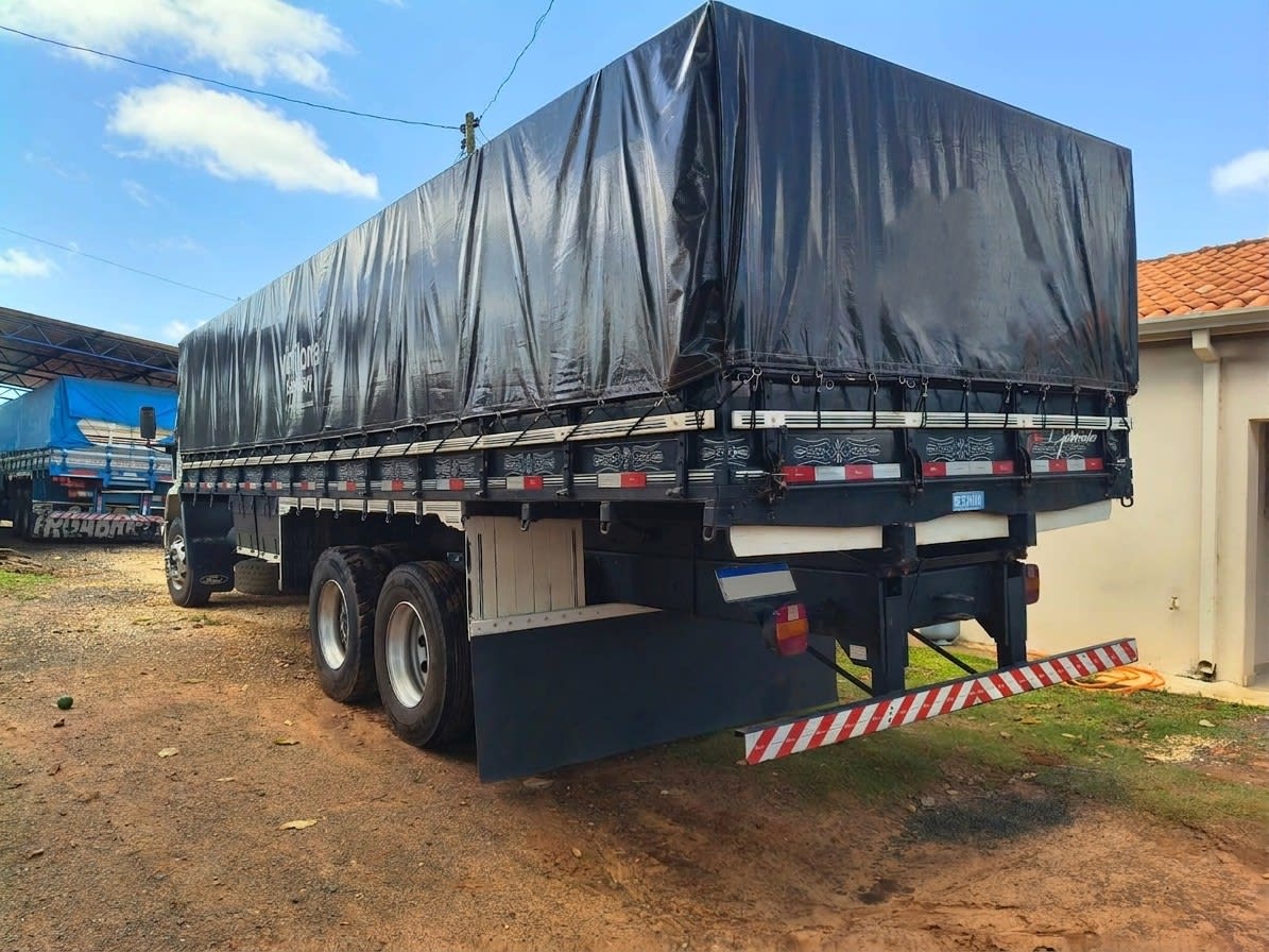 Ford Cargo 2422 4x2 ano 2005, com motor Cummins e conjunto com carreta 2 eixos. Implementação com 7,50 m de comprimento e 1,90 m de altura de tampa, 8 pneus zero, 2 pneus novos na dianteira e recapados na tração. Conjunto pronto para trabalhar com excelente custo-benefício.
