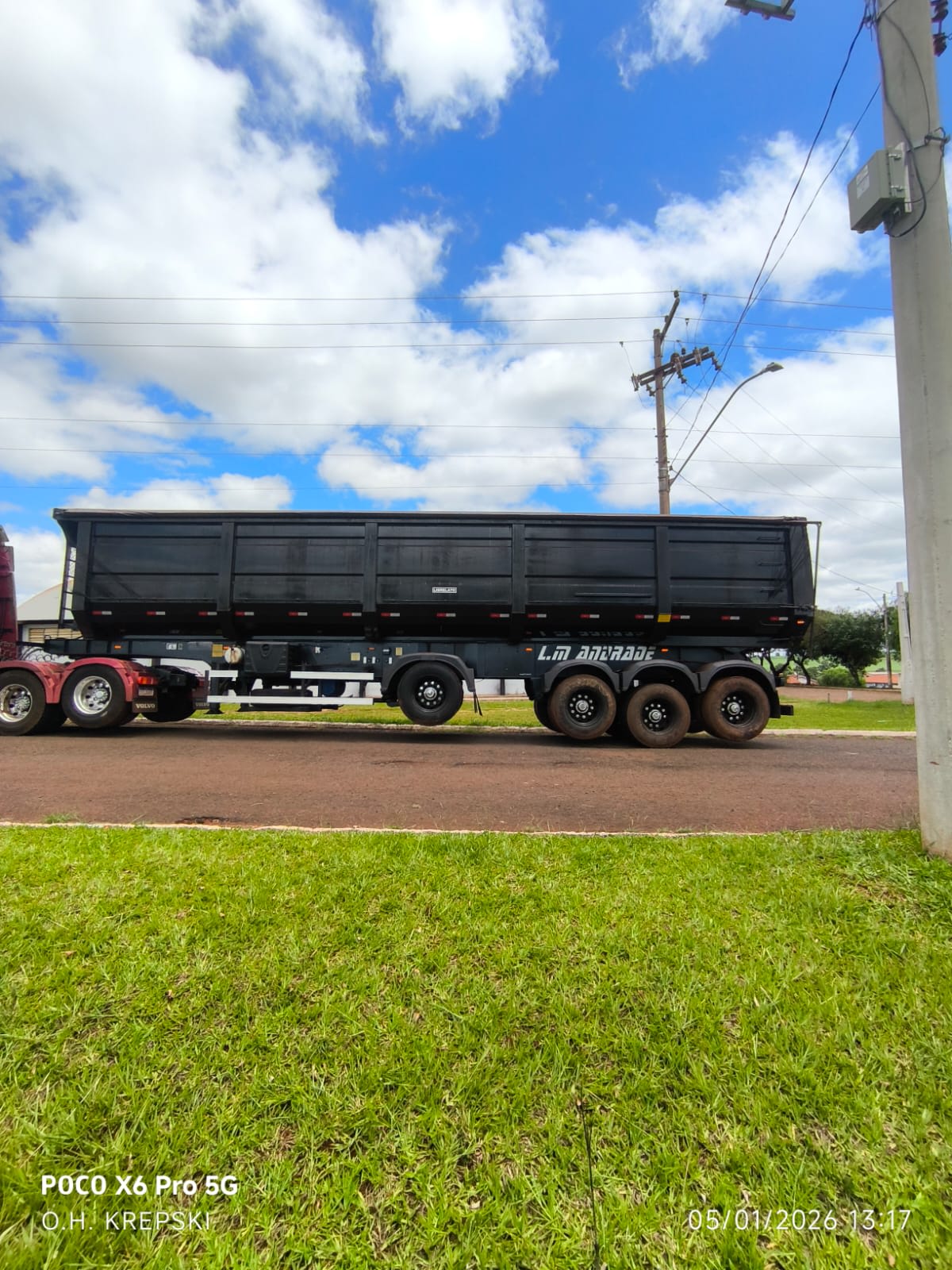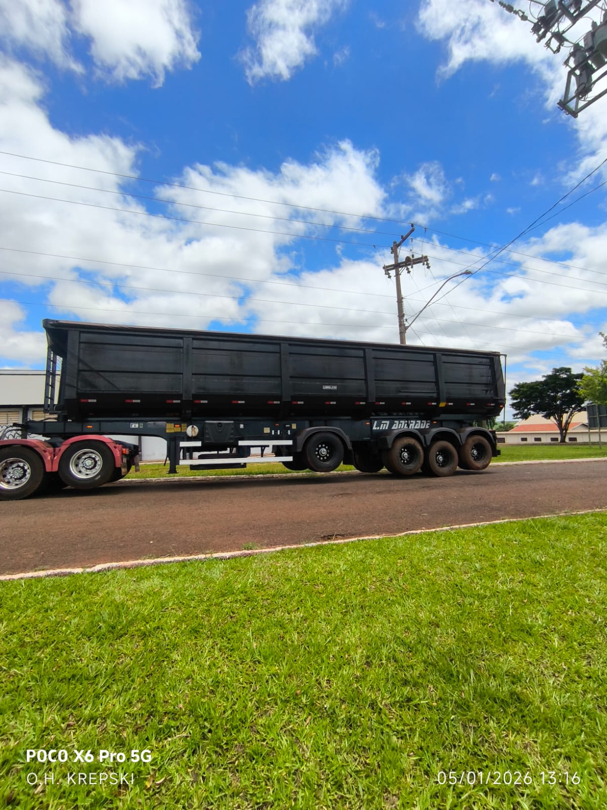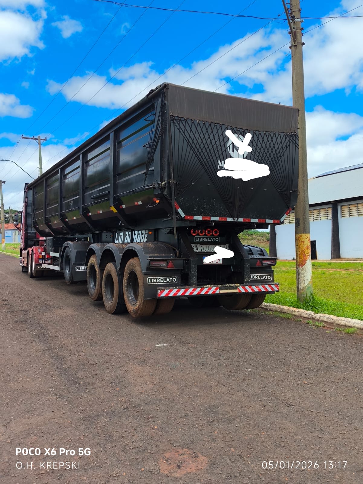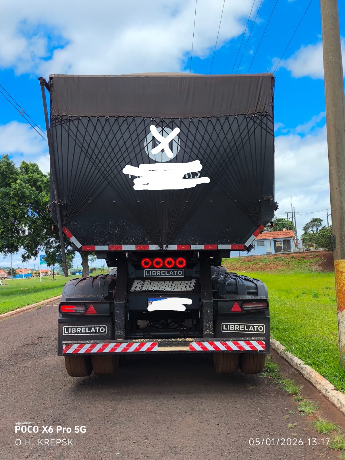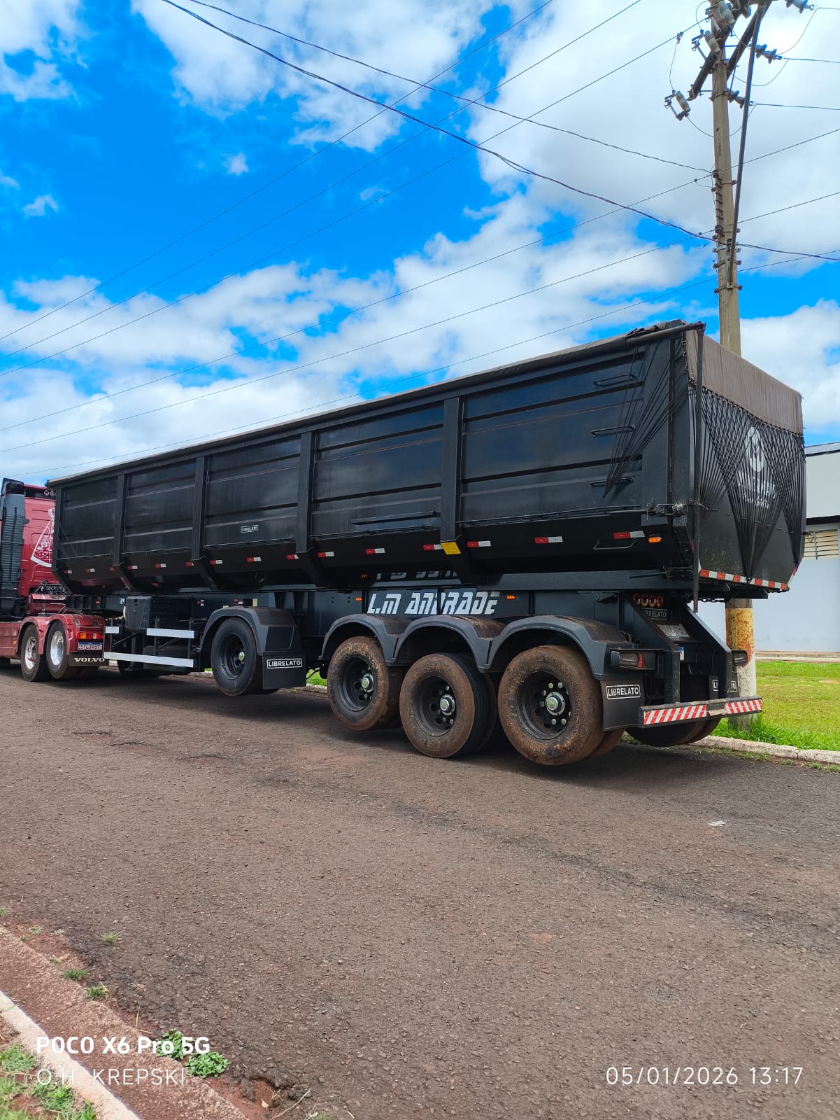 Carreta basculante Librelato 4 eixos ano 2023, com lona fácil Tecnil, vibrador instalado e molejo reforçado com 14 molas. Implemento moderno, muito bem estruturado e pronto para trabalho pesado.