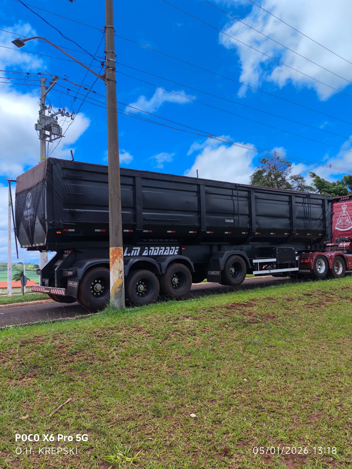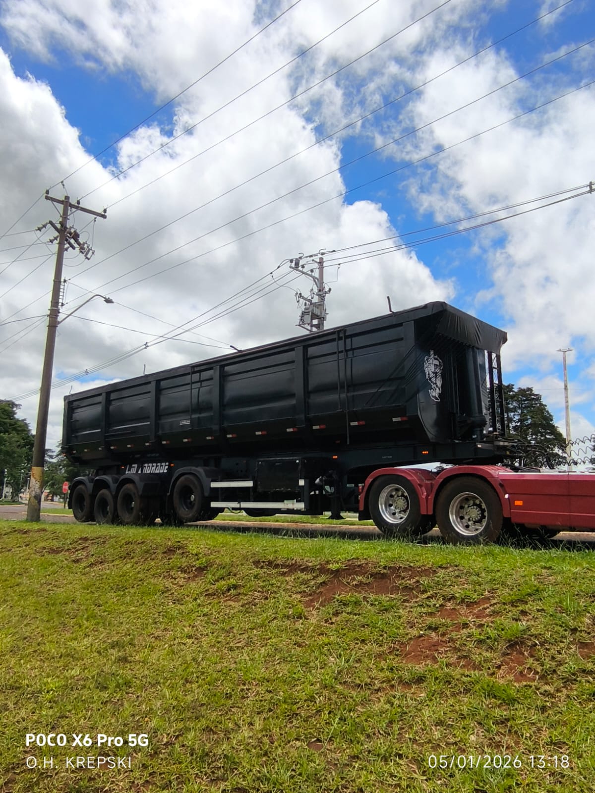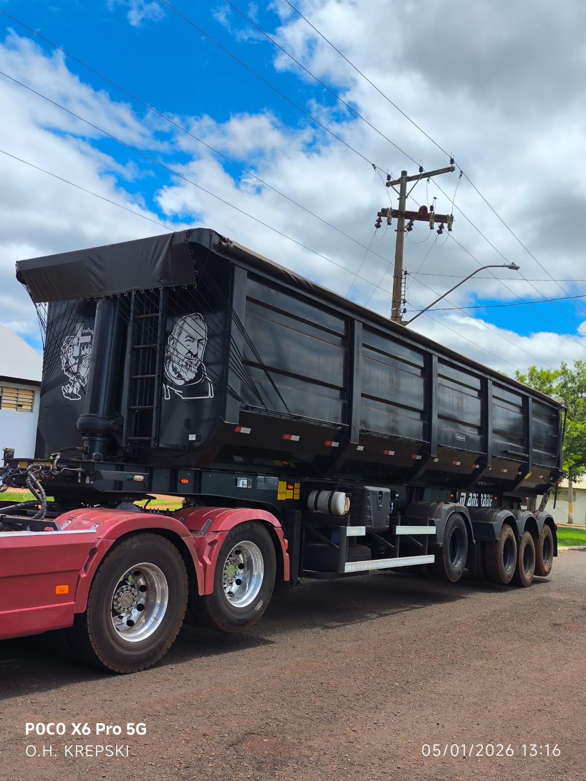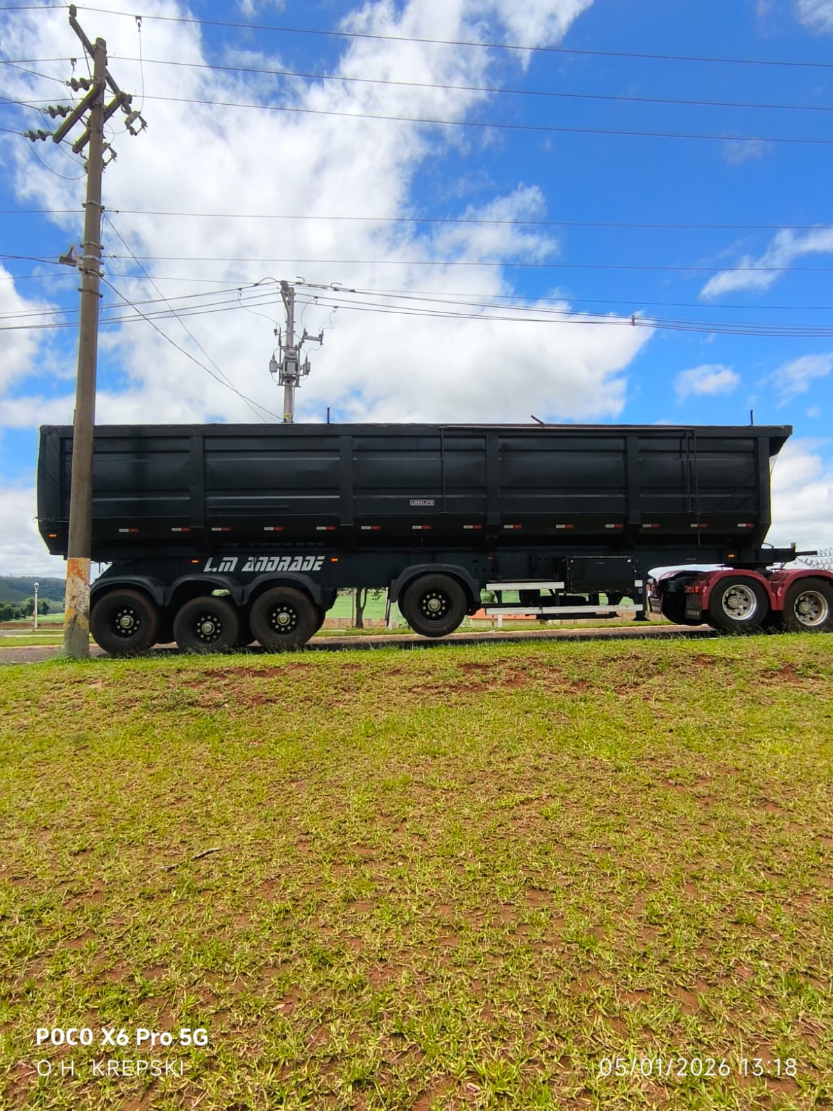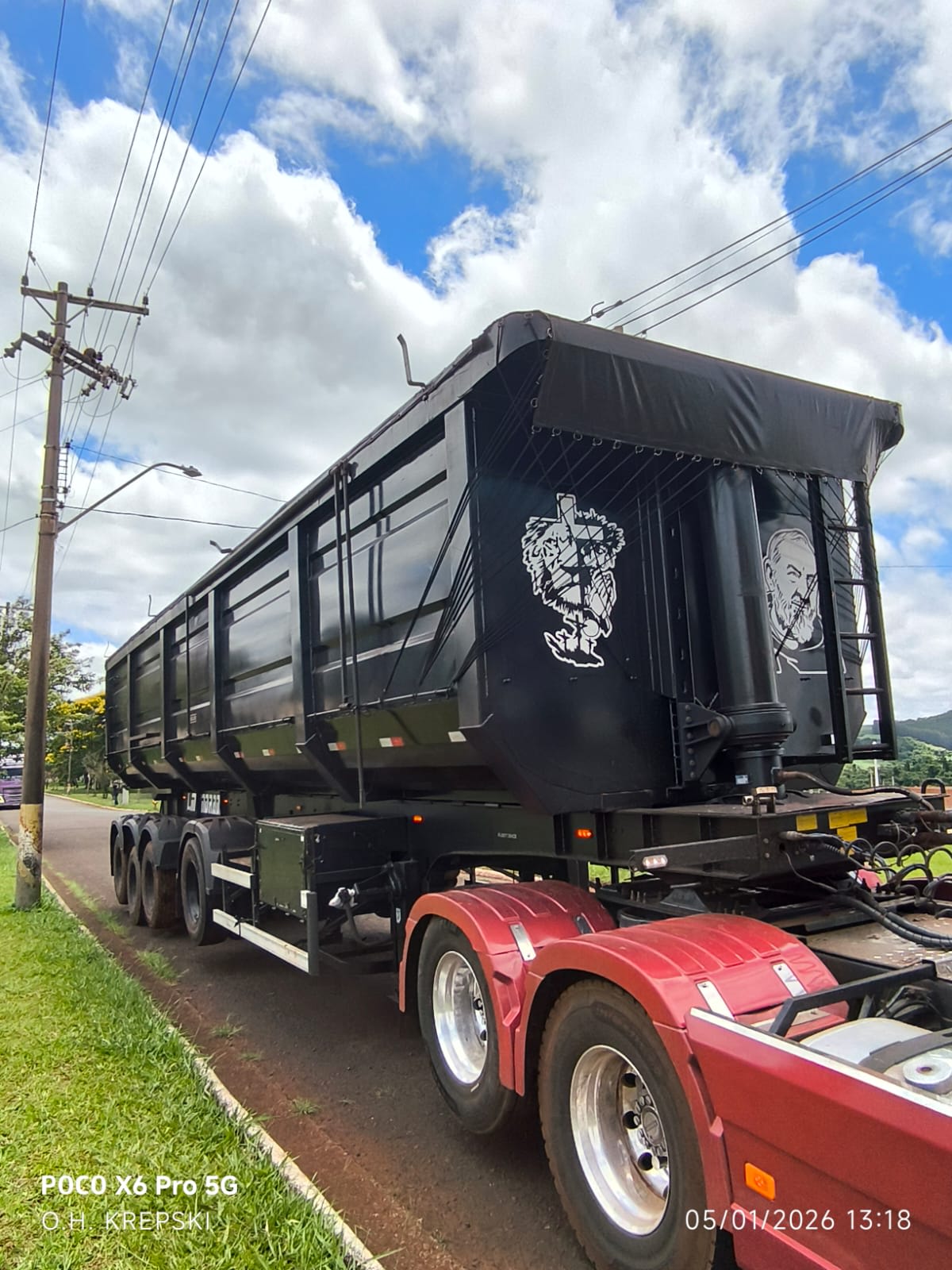Carreta basculante Librelato 4 eixos ano 2023, com lona fácil Tecnil, vibrador instalado e molejo reforçado com 14 molas. Implemento moderno, muito bem estruturado e pronto para trabalho pesado.