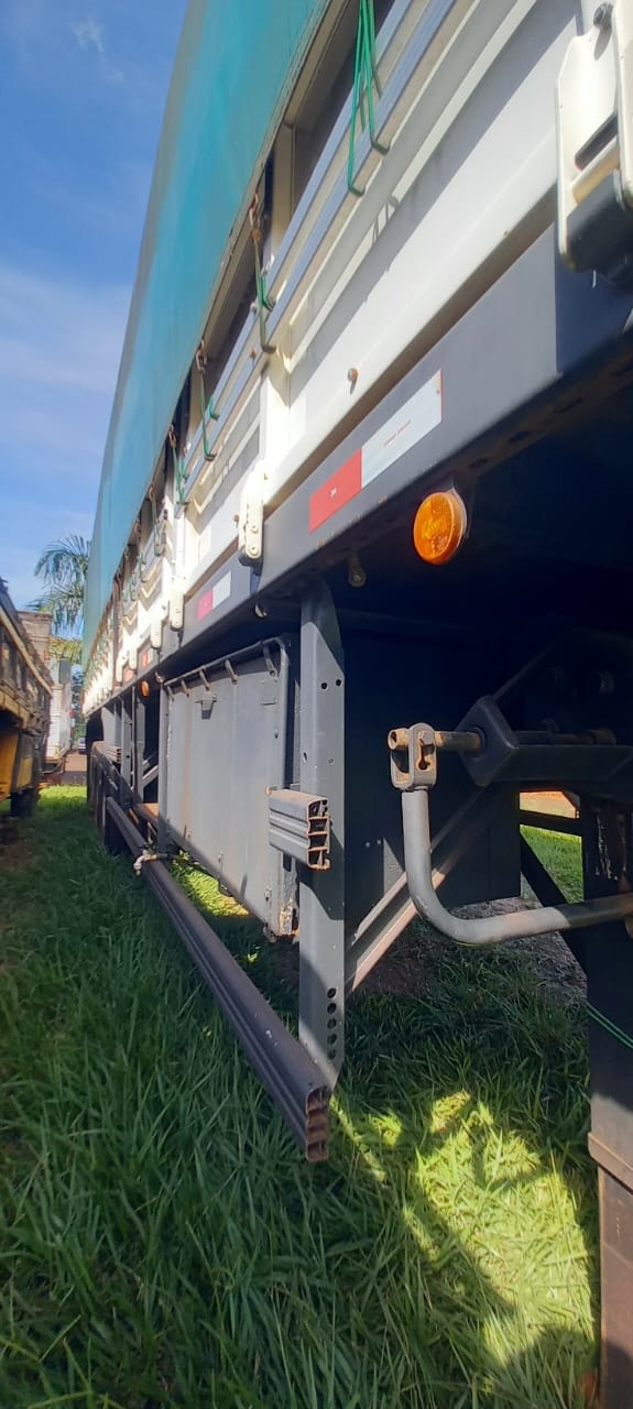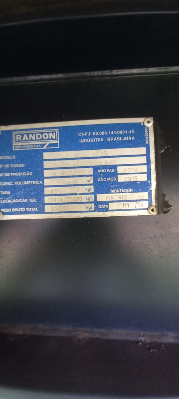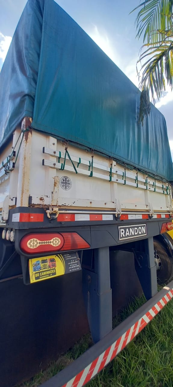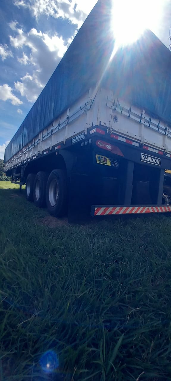 Carreta graneleira Randon SR GR AD 03 35 ano/modelo 2014/2015, 3 eixos, com 13,50 m de comprimento, tampas de 1,80 m, assoalho naval e 2 erguedores de eixo. Implemento íntegro, com documentação em dia e pronto para trabalhar no transporte de grãos.